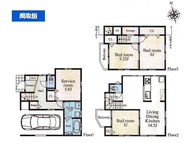 | 間取 | 4LDK (洋室5.6帖、洋室5帖、洋室5.25帖、洋室6帖、LDK14.5帖) | ||